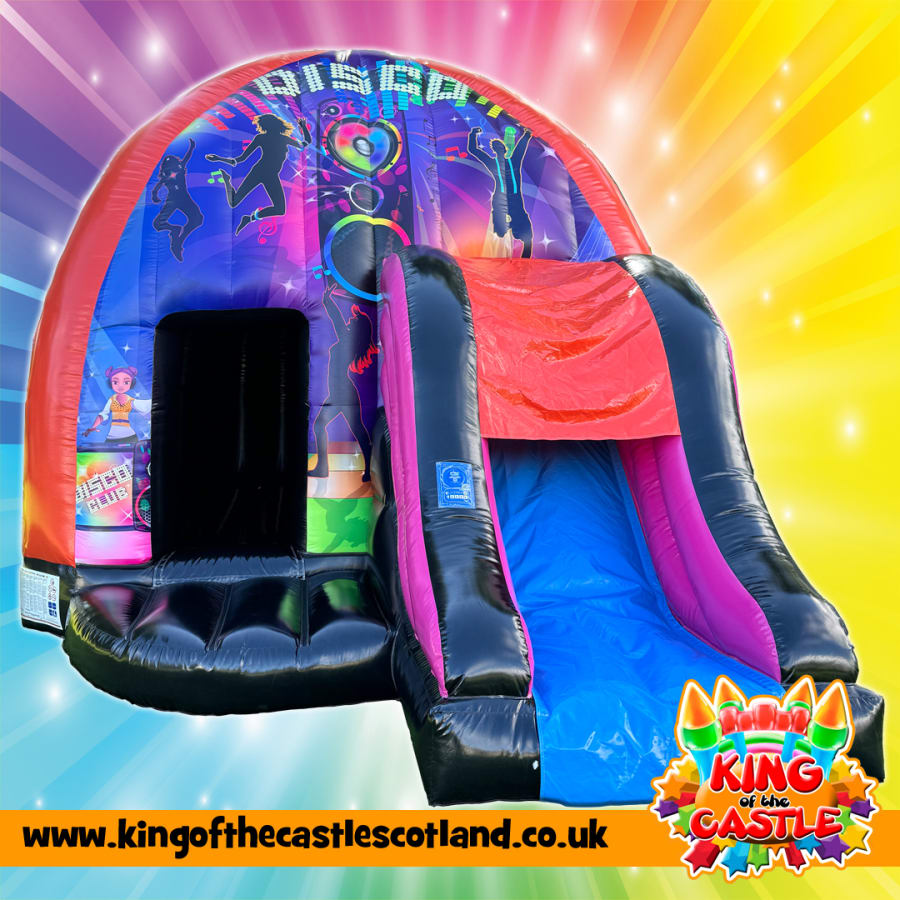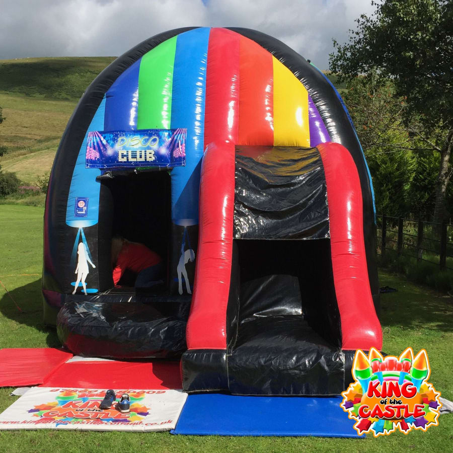 This is our most popular inflatable, by FAR! It has twin LED Disco Lights, bluetooth enabled MP3 speaker and a compact slide on the front. Everyone loves to boogie at a party, so it's little surprise that our Disco Dome has attended everything from a Christening to a 90th birthday (and yes, the birthday girl had a shot). It's especially popular with young teens, who may have outgrown a traditional bouncy castle, but aren't old enough for a night on the town. Let the disco come to you (and mum can keep an eye on proceedings).