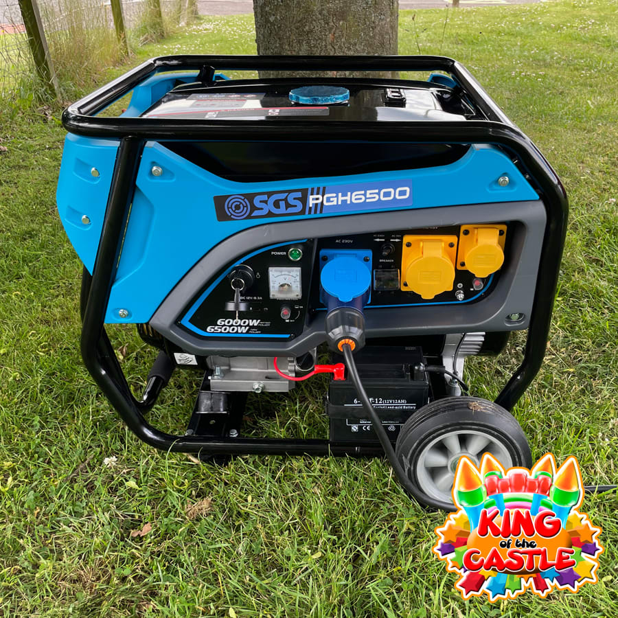 This generator is powerful enough to run up to two inflatables for a maximum of six hours.